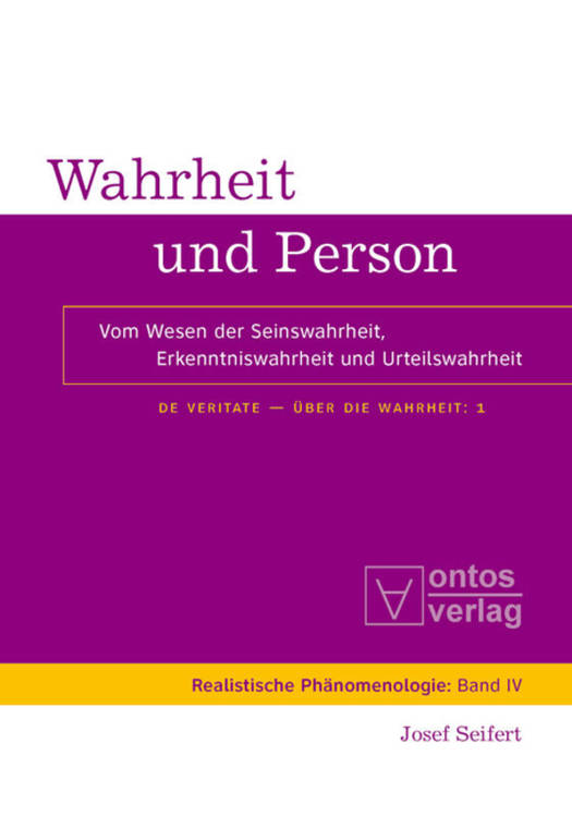 Der erste Band des Über die Wahrheit bietet eine philosophische Untersuchung: (1) der intrinischen und extrinsischen Bedeutungen von "Wahrheit des Seins" - etwa Seinsautonomie, Realität, Wesensentsprechung, Entsprechung im Verhältnis zur Idee, Intelligibilität, absolut umfassende "innere Seinswahrheit". (2) der Wahrheit des Erkennens: Erkenntniswahrheit ist eine eigentümliche seinsentdeckende "Entsprechung" von Akten mit allen Arten von Seiendem und Sachverhalten. (3) der logischen Wahrheit als präziser Korrespondenz zwischen Urteil (Satz) und Sachverhalt. (4) Wahrheit ist nicht nur Eigenschaft der von Menschen gedachten Urteile, sondern setzt ideale, zeitlose, unendlich viele und perfekte Begriffe und Urteilsinhalte voraus. (5) Die Beziehung zwischen Wahrheit und Person gipfelt in dem letzten metaphysischen Zusammenfallen der Wahrheit selbst in allen ihren Dimensionen ontologischer, epistemologischer, axiologischer und logischer Dimensionen mit dem absoluten, personalen Sein.: "Ich bin die Wahrheit". Dieses "personale Gesicht" der Wahrheit kann aber unmöglich das eines bloßen Menschen sein.