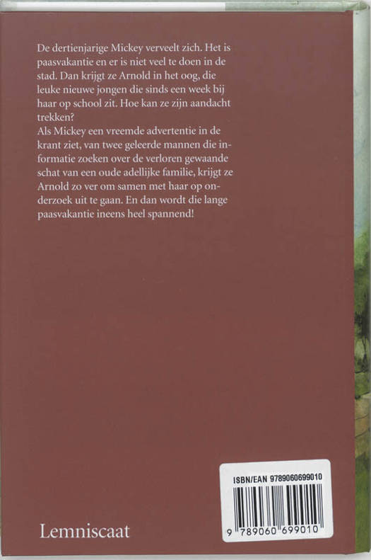 De dertienjarige Mickey verveelt zich. Het is paasvakantie en er is niet veel te doen in het stadje. Dan krijgt ze Arnold in het oog. Ze probeert op allerlei manieren zijn aandacht te trekken; eerst lukt dat niet, maar daar komt al snel verandering in. Een vreemde advertentie in de krant trekt Mickeys aandacht. Twee geleerde mannen vragen informatie over de verloren gegane schat van een oude adellijke familie. Samen met Arnold gaat Mickey op onderzoek uit. Er bestaat toch geen leukere manier om de paasvakantie door te brengen dan met het zoeken naar een verloren schat?