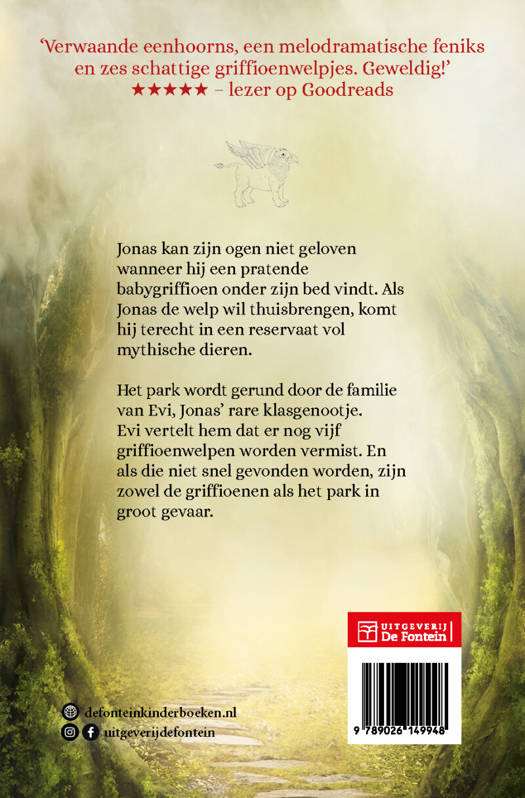Jonas kan zijn ogen niet geloven wanneer hij een pratende babygriffioen onder zijn bed vindt. Als Jonas de welp wil thuisbrengen, komt hij terecht in een reservaat vol mythische dieren. Het park wordt gerund door de familie van Evi, Jonas' rare klasgenootje. Evi vertelt hem dat er nog vijf griffioenwelpen worden vermist. En als die niet snel gevonden worden, zijn zowel de griffioenen als het park in groot gevaar…