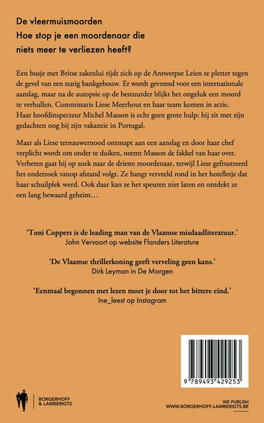 Een busje met Britse zakenlui rijdt zich op de Antwerpse Leien te pletter tegen de gevel van een statig bankgebouw. Er wordt gevreesd voor een internationale aanslag, maar na de autopsie op de bestuurder blijkt het ongeluk een moord te verhullen. Commissaris Liese Meerhout en haar team komen in actie. Haar hoofdinspecteur Michel Masson is echt geen grote hulp: hij zit met zijn gedachten nog bij zijn vakantie in Portugal.