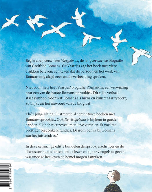 In deze eenmalige editie bundelen de sprookjesschrijver en de illustrator hun talenten om de lezer en kijker vleugels te geven, waarmee ze heel even de hemel mogen aanraken.