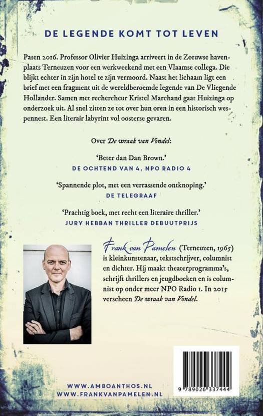Pasen 2016. Professor Olivier Huizinga arriveert in de Zeeuwse havenplaats Terneuzen, voor een werkweekend met een Vlaamse collega. Die blijkt echter dood in zijn hotel te liggen. Bij het lijk wordt een brief aangetroffen met een fragment uit de wereldberoemde legende van De Vliegende Hollander. Samen met rechercheur Kristel Marchand gaat Huizinga op onderzoek uit. Onmiddellijk zitten ze tot over hun oren in een historisch wespennest vol oosterse gevaren.