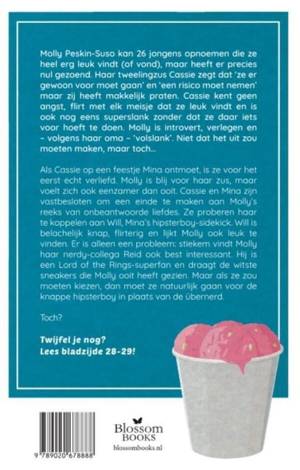 Molly Peskin-Suso kan 26 jongens opnoemen die ze heel erg leuk vindt (of vond), maar heeft er precies nul gezoend. Haar tweelingzus Cassie zegt dat 'ze er gewoon voor moet gaan' en 'een risico moet nemen' maar zij heeft makkelijk praten. Cassie kent geen angst, flirt met elk meisje dat ze leuk vindt en is ook nog eens superslank zonder dat ze daar iets voor hoeft te doen. Molly is introvert, verlegen en - volgens haar oma - 'volslank'. Niet dat het uit zou moeten maken, maar toch...