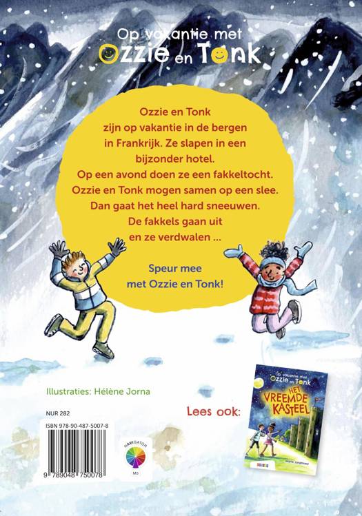 Op vakantie met Ozzie en Tonk is een spannende speurdersserie voor kinderen van 7 tot 9 jaar. In elk boek gaan de vrienden Ozzie en Tonk op vakantie, steeds in een ander land. Daar ontdekken ze iets verdachts dat tot op de bodem uitgezocht moet worden! In dit boek gaan de vrienden Ozzie en Tonk op wintervakantie naar Frankrijk. Op een avond komen ze in een sneeuwstorm terecht. Dan ontdekken ze een geheime gang in de berg. Heerlijk speurdersboek op AVI M5.