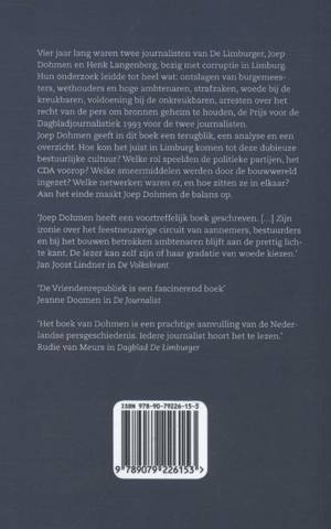 Vier jaar lang waren twee journalisten van De Limburger, Joep Dohmen en Henk Langenberg, bezig met corruptie in Limburg. Hun onderzoek leidde tot heel wat: ontslagen van burgemeesters, wethouders en hoge ambtenaren, strafzaken, woede bij de kreukbaren, voldoening bij de onkreukbaren, arresten over het recht van de pers om bronnen geheim te houden, de Prijs voor de Dagbladjournalistiek 1993 voor de twee journalisten.
