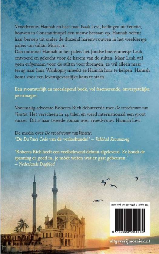 Een avontuurlijk en meeslepend boek, vol fascinerende, onvergetelijke personages. Deze roman zal de fans van De Vroedvrouw uit Venetië zeker bevallen en Roberta's reputatie als een van de meeste geliefde auteurs van historische romans verder versterken.