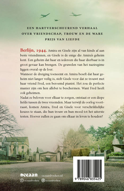 Een meeslepende oorlogsroman van de auteur van De verloren dochters, voor lezers van Kristin Hannah, Heather Morris en Pam Jenoff Berlijn, 1944. Amira en Gisele zijn al van kinds af aan beste vriendinnen, en Gisele is de enige die Amira's geheim kent. Een geheim dat haar en iedereen die haar dierbaar is in groot gevaar kan brengen. De gruwelen van het naziregime liggen overal op de loer. Wanneer de dreiging toeneemt en Amira beseft dat haar geheim niet langer veilig is, stelt Gisele voor dat ze trouwt met haar vriend Fred, een beroemd pianist. Het zou de perfecte manier zijn om hen allebei te beschermen. Want Fred heeft ook geheimen. Nadat ze beloven voor elkaar te zorgen, ontstaat er een diepe liefde tussen de twee vreemden. Maar terwijl de oorlog voortraast, komen Amira, Fred en Gisele voor verschrikkelijke keuzes te staan, die hun trouw en hun moed tot het uiterste testen. Hoever zullen ze gaan om elkaar in leven te houden?