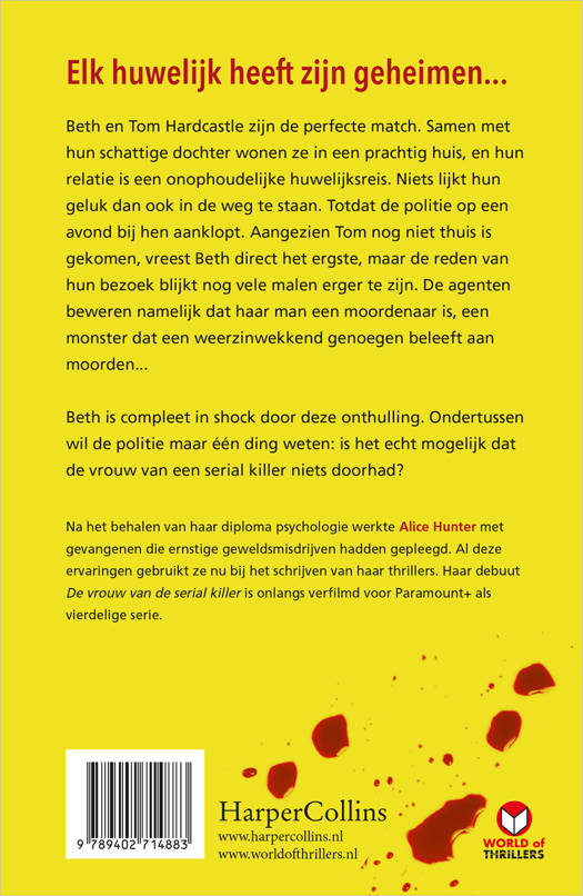 De vrouw van de serial killer is een spannende serial killer-thriller van Alice Hunter. Binnenkort te zien als televisieserie.