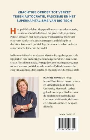 In De waarheidscrisis analyseert Martine Prange het post-truth tijdperk in drie onderling samenhangende domeinen: democratie, filosofie en media. Prange doet een indringende aanzet tot een ‘nieuwe politiek van de waarheid’, die de herwaardering van waarheid, democratie en menselijkheid centraal stelt.