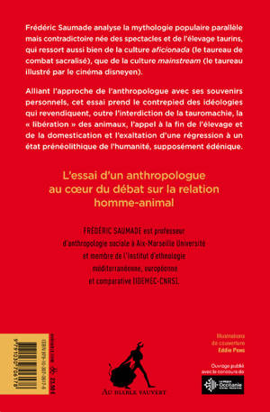 Frédéric Saumade analyse la mythologie populaire parallèle mais contradictoire née des spectacles et de l’élevage taurins, qui ressort aussi bien de la culture aficionada (le taureau de combat sacralisé), que de la culture mainstream (le taureau illustré par le cinéma disneyen).
