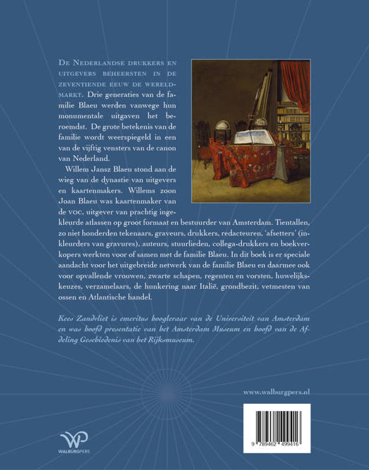 Nederlandse drukkers en uitgevers beheersten in de zeventiende eeuw de wereldmarkt. De familie Blaeu was en is het beroemdst. Willem Jansz. Blaeu stond aan de wieg van de dynastie van uitgevers en kaartenmakers. Willems zoon Joan Blaeu was kaartenmaker van de VOC, uitgever van prachtig ingekleurde atlassen op groot formaat en bestuurder van Amsterdam. Tientallen, zo niet honderden tekenaars, graveurs, drukkers, redacteuren, ‘afsetters’ (inkleurders van gravures), auteurs, stuurlieden, collega-drukkers en boekverkopers werkten voor of samen met de familie Blaeu. In dit boek is er speciale aandacht voor het uitgebreide netwerk van de familie en daarmee ook voor opvallende vrouwen, zwarte schapen, regenten en vorsten, huwelijkskeuzes, verzamelaars, de hunkering naar Italië, grondbezit, het vetmesten van ossen en de Atlantische handel.