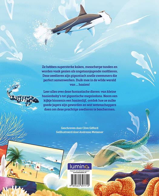 Ze hebben supersterke kaken, messcherpe tanden en worden vaak gezien als angstaanjagende roofdieren. Deze zeedieren zijn gigantisch snelle zwemmers die perfect samenwerken. Duik mee in de wilde wereld van … haaien! Leer alles over deze fantastische dieren: van kleine haaienbaby’s tot gigantische megalodons. Neem een kijkje binnenin een haaienlijf, ontdek hoe ze zulke goede jagers zijn geworden en wat wetenschappers doen om deze prachtige zeedieren te beschermen.