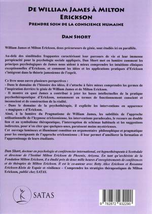 William James et Milton Erickson, deux précurseurs de génie, sont étudiés ici en parallèle. Au-delà des similitudes frappantes caractérisant leur parcours de vie et leur immense perspicacité pour la psychologie sociale appliquée, Dan Short met en lumière comment les principes psychologiques de James nous aident à mieux comprendre les intuitions cliniques exceptionnelles d'Erickson, et comment les idées et les applications pratiques d'Erickson s'intègrent dans la théorie jamesienne de l'esprit. Ce livre nous ouvre plusieurs perspectives : Dans le domaine de l'histoire des idées, il s'attache à faire mieux comprendre les germes de l'inspiration derrière le génie de William James et de Milton Erickson. Il montre en quoi James a contribué à jeter les bases intellectuelles de la pratique psychothérapeutique d'Erickson, notamment en termes de fonctionnement conscient et inconscient et de construction de la réalité. Dans le domaine de la psychothérapie, il explicite les interventions en apparence "magiques" d'Erickson. Ainsi, à la lumière du Pragmatisme de William James, les subtilités de l'approche utilisationnelle de l'hypnose ericksonienne, les interventions paradoxales, le recours au double lien et au symbolisme thérapeutique, l'interruption de schémas habituels et les suggestions indirectes, pour n'en citer que quelques-unes, paraissent moins mystérieuses. Cet ouvrage lumineux et illuminant constitue un argumentaire philosophique et pragmatique pour les enseignants de l'approche ericksonienne ; il leur permet d'améliorer la formation et l'apprentissage de leurs étudiants.