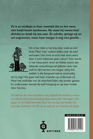 Kik doet niets liever dan dwalen door het bos. Hier, tussen het groen, kan ze zichzelf zijn en voelt ze zich helemaal thuis. Maar haar vaders willen verhuizen naar de grote stad, iets wat Kik vreselijk lijkt. Dan wordt een beroemde natuurfotograaf gebeten door een wolf op de Veluwe en lijkt het bos niet langer veilig. Maar is deze fotograaf wel zo onschuldig als hij lijkt? Kik en haar vrienden ontdekken dat er veel meer speelt, terwijl de wolf hongerig en op haar hoede door het bos dwaalt.