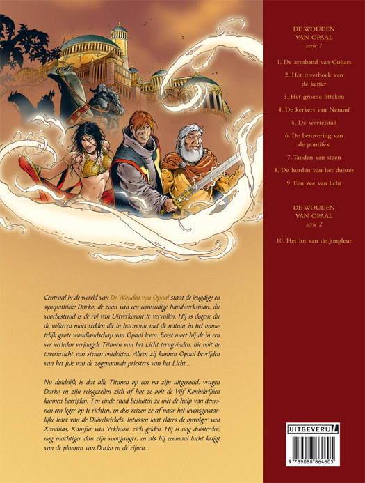 Centraal in de wereld van De Wouden van Opaal staat de jeugdige en sympathieke Darko, de zoon van een eenvoudige handwerksman, die voorbestemd is de rol van Uitverkorene te vervullen. Hij is degene die de volkeren moet redden die in harmonie met de natuur in het onme- telijk grote woudlandschap van Opaal leven. Eerst moet hij de in een ver verleden verjaagde Titanen van het Licht terugvinden, die ooit de toverkracht van stenen ontdekten. Alleen zij kunnen Opaal bevrijden van het juk van de zogenaamde priesters van het Licht...