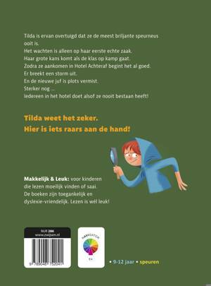 Tilda is overtuigd dat ze de meest briljante speurneus ooit is. Het wachten is alleen op haar eerste echte zaak. Haar grote kans komt als de klas op kamp gaat. Zodra ze aankomen in Hotel Achteraf begint het al goed. Er breekt een storm uit. En de nieuwe juf is plots vermist. Sterker nog … iedereen in het hotel doet alsof ze nooit bestaan heeft!
