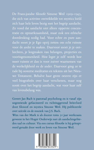 Govert Jan Bach is pastoraal psycholoog en is vanaf zijn negentiende gefascineerd en richtinggevend beïnvloed door filosoof en mystica Simone Weil. Hij publiceerde over suïcide en de muziek van J.S. Bach. Wim van der Mark is als docent ruim 30 jaar werkzaam geweest in het Hoger Onderwijs met als aandachtsgebieden taal en cultuur. Via een cursus filosofie is hij geïnspireerd geraakt door werk en leven van Simone Weil.