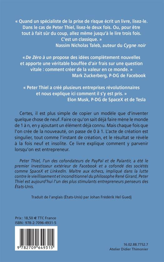 « Quand un spécialiste de la prise de risque écrit un livre, lisez-le. Dans le cas de Peter Thiel, lisez-le deux fois ou pour être tout à fait sûr du coup, allez même jusqu’à le lire trois fois. C’est un classique. »