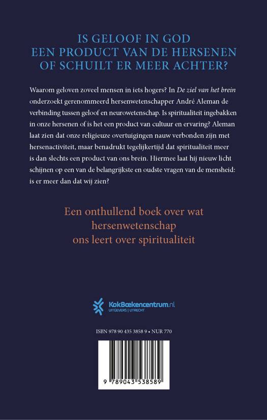 In 'De ziel van het brein' onderzoekt hersenwetenschapper André Aleman, auteur van o.a. de bestseller 'Het seniorenbrein', de verbinding tussen geloof en neurowetenschap. Waarom geloven zoveel mensen in iets hogers? Is spiritualiteit ingebakken in onze hersenen of is het een product van cultuur en ervaring? Deze gerenommeerde neurowetenschapper laat zien dat onze religieuze overtuigingen nauw verbonden zijn met hersenactiviteit, maar benadrukt tegelijkertijd dat spiritualiteit meer is dan slechts een product van ons brein. Hiermee laat hij nieuw licht schijnen op een van de belangrijkste en oudste vragen van de mensheid: is er meer dan dat wij zien?