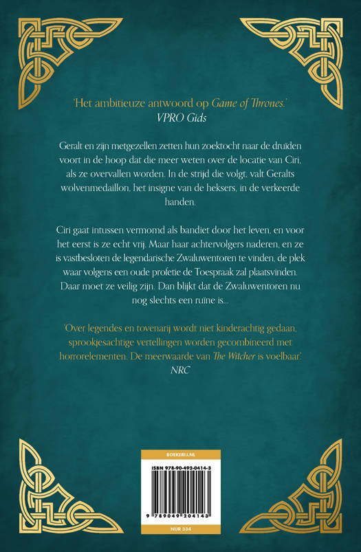 ‘In vergelijking met Tolkien is de spanning in Sapkowski’s werk tot het laatste moment voelbaar en urgenter.’ De Telegraaf