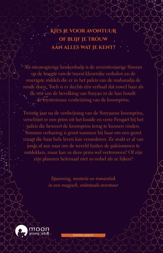 Als nieuwsgierige keukenhulp is de zeventienjarige Simran op de hoogte van de meest kleurrijke verhalen en de smerigste roddels die er in het paleis van de maharadja de ronde doen. Toch is er slechts één verhaal dat zowel haar als de rest van de bevolking van Suryan in de ban houdt: de mysterieuze verdwijning van de kroonprins.