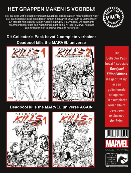 Stel dat alles wat je grappig vond aan Deadpool eigenlijk alleen maar gestoord was? Stel dat hij besloot alles en iedereen binnen het Marvel-universum te vermoorden? En stel dat hem dat zou lukken? Zou je dat GRAPPIG vinden? De bijdehante huurmoordenaar gaat een waanzinnige kant op nu hij iedere Marvel-held aan zijn zwaarden rijgt in een weergaloze horrorstrip!