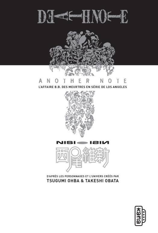Voici le premier roman édité par Kana ! Et il est issu de l'univers de Death Note ! Le roman reprend des personnages du manga mais est sans lien direct avec l'intrigue principale de la série manga. Ainsi ce roman se déroule-t-il avant l'affaire Kira présentée dans Death note.