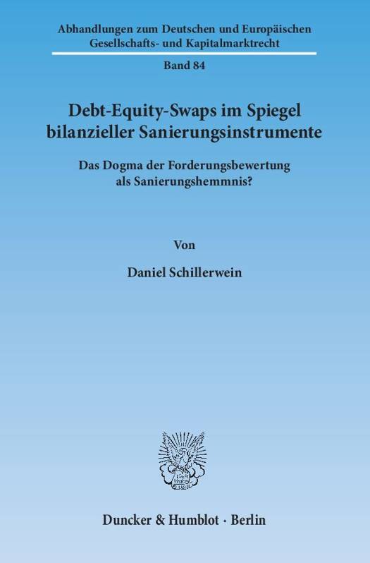 Der Debt-Equity-Swap gilt als ein besonders Erfolg versprechendes bilanzielles Sanierungsinstrument. Bei der praktischen Umsetzung ist der neuralgische Punkt die Frage der Bewertung von Einlageforderungen, die krisenbedingt unter ihrem Nennwert liegen. Nach wie vor ist umstritten, ob und gegebenenfalls wie gegen die Schuldnergesellschaft gerichtete Forderungen bei der Kapitalaufbringung zu bewerten sind. Die Analyse der Bewertungsfrage von Daniel Schillerwein ergibt, dass sich die gegen eine generelle Nennwertanrechnung erhobenen Einwände entkräften lassen. Allerdings hat der Gesetzgeber im KredReorgG und ESUG Regelungen zum Debt-Equity-Swap getroffen und sich hierbei an der bislang herrschenden Meinung zur Bewertungsfrage orientiert, wonach eine Forderungsbewertung erforderlich ist. Dieses gesetzgeberische Vorverständnis steht einer generellen Nennwertanrechnung de lege lata auch außerinsolvenzlich entgegen. Daher plädiert der Autor für eine gesetzliche Normierung der Nennwertanrechnung.