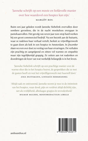 'Altijd raak en ontroerend. Janneke neemt je mee in de intimiteit van het hospice, waar dood, pijn en verdriet altijd dichtbij zijn, net als vrolijkheid, alledaagse grapjes én tevredenheid.' - Hilmar Mulder, hoofdredacteur Libelle