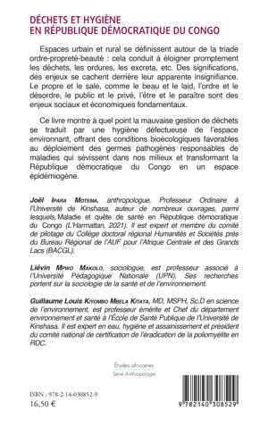 Espaces urbain et rural se définissent autour de la triade ordre-propreté-beauté : cela conduit à éloigner promptement les déchets, les ordures, les excreta, etc. Des significations, des enjeux se cachent derrière leur apparente insignifiance. Le propre et le sale, comme le beau et le laid, l'ordre et le désordre, le public et le privé, l'être et le paraître sont des enjeux sociaux et économiques fondamentaux. Ce livre montre à quel point la mauvaise gestion de déchets se traduit par une hygiène défectueuse de l'espace environnant, offrant des conditions bioécologiques favorables au déploiement des germes pathogènes responsables de maladies qui sévissent dans nos milieux et transformant la République démocratique du Congo en un espace épidémiogène.