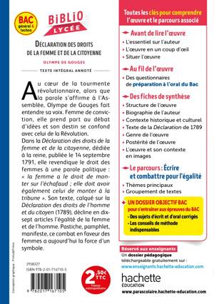 Programme du BAC 2024 – Première générale et Premières technologiquesObjet d’étude : La littérature d’idées du XVIe siècle au XVIIIe siècle – Parcours traité : Ecrire et combattre pour l’égalité L’œuvreAu cœur de la tourmente révolutionnaire, alors que la parole s’affirme à l’Assemblée, Olympe de Gouges fait entendre sa voix. Femme de conviction, elle prend part au débat d’idées et son destin se confond avec celui de la Révolution.