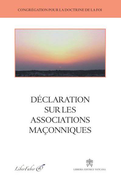 Cet ouvrage présente à nouveau la Déclaration sur les associations maçonniques publiée le 23 novembre 1983 par la Congrégation pour la Doctrine de la Foi. Le texte, en version latine et française, est précédé d’une Préface de S.E. Monseigneur Luis F. Ladaria, Secrétaire du Dicastère, mais aussi par une Introduction du Cardinal Préfet Gerhard Müller. À ces textes s’ajoutent les « Réflexions un an après la Déclaration mentionnée ci-dessus, au sujet de l’incompatibilité entre la foi chrétienne et la franc-maçonnerie » ("L’Osservatore Romano", 1985), les documents des Conférences épiscopales allemande et philippine sur ce sujet et un article sur l’Église et la franc-maçonnerie aujourd’hui (publié dans "La Civiltà Cattolica").