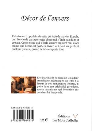 Eric Martins da Fonseca dans cet ouvrage relate ses aventures schizophréniques. Le récit aborde la période où il fut clochard. Ses hallucinations et ses voix assaillaient son être, le poussant vers des délires toujours plus grands. Il raconte aussi ses internements en psychiatrie. L'amour déçu, et très présent, qu'il portait à une femme, l'emporte aussi sur des chemins où la folie reste prégnante. L'ensemble gardant une pudeur et une intégrité remarquable. Il découvre aussi un espace qu'il nomme l'Interdit, au sein duquel il loge sa folie.