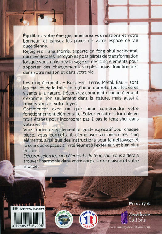 Équilibrez votre énergie, améliorez vos relations et votre bonheur, et pansez les plaies de votre espace de vie quotidienne. Rejoignez Tisha Morris, experte en feng shui occidental, qui dévoilera les incroyables possibilités de transformation lorsque vous utiliserez la sagesse des cinq éléments pour apporter des changements simples, mais fonctionnels, dans votre maison et dans votre vie. Les cinq éléments - Bois, Feu, Terre, Métal, Eau - sont les mailles de la toile énergétique qui relie tous les êtres vivants à la nature. Découvrez comment chaque élément s'exprime non seulement dans la nature, mais aussi à travers vous et votre foyer. Commencez avec un quiz pour comprendre votre fonctionnement élémentaire. Suivez ensuite la formule en trois étapes pour incorporer pas à pas le feng shui dans votre vie. Vous trouverez également un guide explicatif pour chaque pièce, vous permettant d'employer au mieux les cinq éléments, ainsi que des instructions pour le nettoyage et le soin des espaces à l'intérieur et à l'extérieur, et bien plus encore... Décorer selon les cinq éléments du feng shui vous aidera à trouver l'harmonie dans votre corps, votre maison et votre monde.