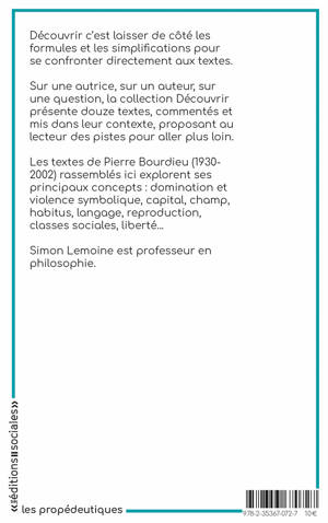 Les concepts de Pierre Bourdieu font école tant et si bien qu'au-delà même de la sociologie critique, on les retrouve dans la littérature journalistique, dans les textes d'organisations, dans les discours politiques... Le livre de Simon Lemoine, docteur en philosophie, professeur de lycée, veut éclairer pour un public non savant les articulations principales d'une pensée qui s'est vouée à la connaissance des mouvements de la société. Comment les dominants dominent-ils ? La sociologie peut-elle servir à transformer les rapports de pouvoir, quelle est la puissance de la violence symbolique, qu'est-ce que l'habitus, la distinction, comment fonctionne la reproduction sociale?? Autant de questions qui animent ce «?Découvrir?» et en font une introduction essentielle à la sociologie de Bourdieu, et à la compréhension du présent.