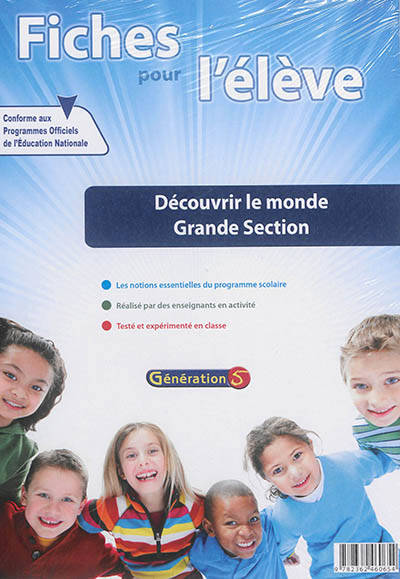 Evolu Fiches - Découvrir le monde en Grande Section est composé d’un fichier papier et d’un logiciel pour avoir les fiches au format papier et numérique. Ce fichier propose un ensemble d'activités et d'exercices pour découvrir le monde en grande section : ESPACE - À gauche, à droite, en haut, en bas / Coder un déplacement avec des flèches / Vers la droite / Vers la gauche. TEMPS - Les saisons / Le jour et la nuit / Les activités du matin / Mettre dans l'ordre une histoire à 4 séquences / Mettre dans l'ordre une histoire à 6 séquences. LES OBJETS - Les objets bruyants ou silencieux / Les instruments de musique à vent / Les instruments de musique à cordes / Les moyens de transport maritime, aérien et terrestre / Les objets électriques / Les situations dangereuses à la maison / Les objets dangereux. LA MATIÈRE - Ce qui flotte et ce qui coule / Les états de l’eau / Le changement d’état de l’eau / Le vent. LE VIVANT - Vivant ou non vivant / La croissance : du plus jeune au plus vieux / Les traces des animaux / Animaux à 4 pattes / Animaux qui volent / Animaux qui pondent / Animaux à plumes, à poils et à écailles / Mode de déplacement des animaux / Insectes volants / Insectes : critères de classement. - Les végétaux (sur les arbres ou dans la terre) / Fruits et légumes qui viennent de loin / Légumes crus ou cuits / Les aliments cuits / Un repas équilibré / Produits laitiers / Animaux et produits de transformation / Aliments bruts et transformés. - Les cinq sens / Le goût : les aliments sucrés et salés / Chaud ou froid / Les objets odorants et inodores / Sentir bon, mauvais / Bruits agréables ou désagréables / Les vêtements et les parties du corps / Le corps humain / Le squelette.