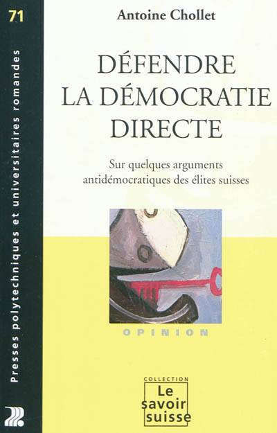 Mal comprise elle est souvent confondue avec les libertés communales du Moyen Age. Ou admise avec des réserves suspectes. L'auteur en appelle à plus de rigueur et, fort de ses convictions, conclut par des appréciations sévères sur la politique suisse. Il décèle dans ses élites des tendances clairement antidémocratiques. Et inversement, il expose les raisons d'une confiance renforcée en l'institution même de la démocratie directe.
