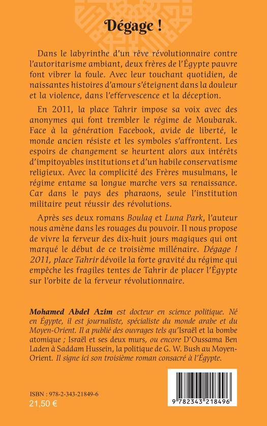 Dans le labyrinthe d’un rêve révolutionnaire contre l’autoritarisme ambiant, deux frères de l’Égypte pauvre font vibrer la foule. En 2011, la place Tahrir impose sa voix avec des anonymes qui font trembler le régime de Moubarak. Face à la génération Facebook, avide de liberté, le monde ancien résiste et les symboles s’affrontent. Les espoirs de changement se heurtent alors aux intérêts d’impitoyables institutions et d’un habile conservatisme religieux. L'auteur nous propose de vivre la ferveur des dix-huit jours magiques qui ont marqué le début de ce troisième millénaire.