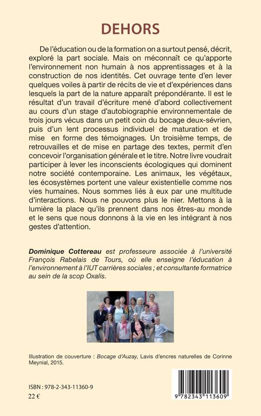 De l'éducation ou de la formation, on a surtout exploré la part sociale. Mais on méconnaît ce qu'apporte l'environnement à nos apprentissages et à la construction de nos identités. Cet ouvrage tente donc de révéler, à partir de quelques récits de vie, ce que la nature nous apporte. Il est le résultat d'un travail d'écriture mené collectivement au cours d'un stage d'autobiographie environnementale. Le but est donc de participer à lever les inconscients écologiques qui dominent notre société contemporaine. Les animaux, les végétaux, les écosystèmes, portent une valeur existentielle comme nos vies humaines.