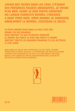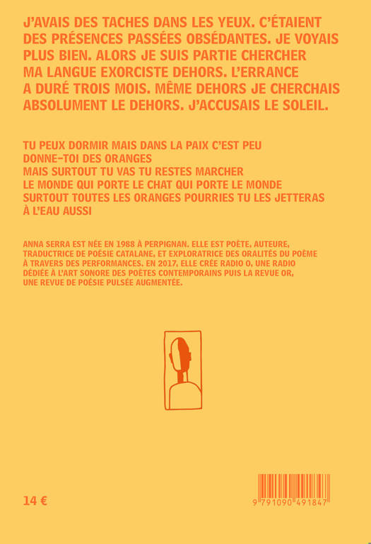J'avais des taches dans les yeux. C'étaient des présences passées obsédantes. je voyais plus bien. Alors je suis partie chercher ma langue exorciste dehors. L'errance a duré trois mois. Même dehors je cherchais absolument le dehors. J'accusais le soleil.