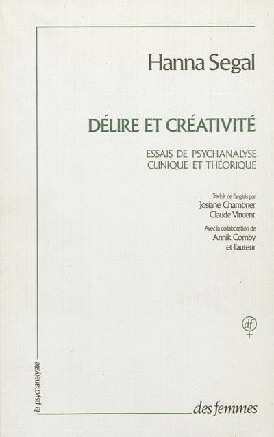 « Ce livre rassemble des articles qu'Hanna Segal écrivit de 1947 à 1980. Le premier, « Approche psychanalytique de l'esthétique », porte le germe de sa pensée ultérieure et de sa recherche originale dans tout ce qui touche au symbolisme, au sein du développement psychique. « Délire et créativité », écrit plus tardif (1974), donne son titre à l'édition française de ce livre. Hanna Segal apporta, dès le début, une part considérable au travail exceptionnellement créatif qui fut produit par le groupe des analystes travaillant dans le champ kleinien, qui prenait naissance en contact étroit avec Melanie Klein, au sein de la Société Britannique de Psychanalyse, dans les années 1950. Son souci de transmettre et de développer ce que Melanie Klein avait donné de plus fécond à la psychanalyse apparaît sans cesse et en particulier dans la très grande rigueur qui soutient toujours son travail clinique et ses élaborations théoriques. » A.C.