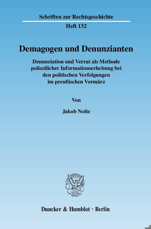 Die Demagogenverfolgung ist die erste politische Verfolgung modernen Stils in Deutschland. Erstmals wurde in Deutschland eine politische Polizei geschaffen. Man hat also den Eindruck, an den Ursprüngen der politischen Denunziation in Deutschland angekommen zu sein. Außerdem prägte die erste Hälfte des 19. Jahrhunderts die Entstehung des modernen Verwaltungsrechts. Institutionell kann in der preußischen politischen Polizei ein Vorgänger der späteren Gestapo gesehen werden, und das preußische Polizeirecht war der Ausgangspunkt der Entwicklung unseres heutigen Polizei- und Verwaltungsrechts. Die Arbeit widmet sich daher besonders der Funktion von Informationsbeschaffung beim Mitbürger im Verwaltungsrecht.