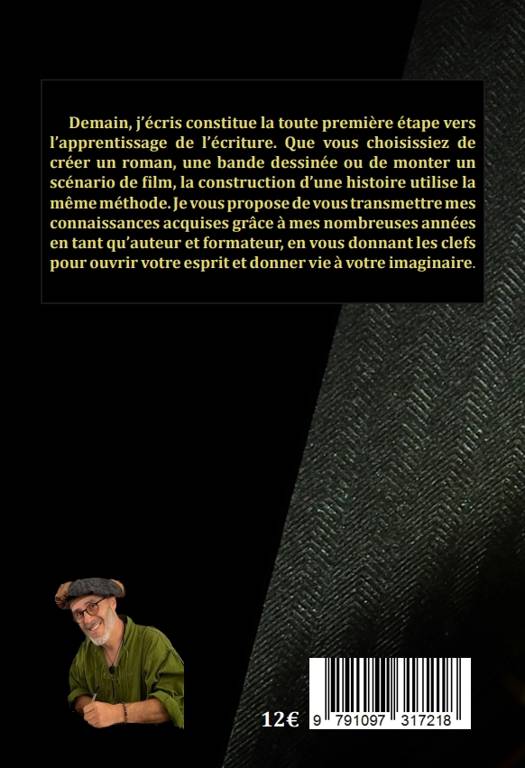 Demain, j’écris constitue la toute première étape vers l’apprentissage de l’écriture. Que vous choisissiez de créer un roman, une bande dessinée ou de monter un scénario de film, la construction d’une histoire utilise la même méthode. Je vous propose de vous transmettre mes connaissances acquises grâce à mes nombreuses années en tant qu’auteur et formateur, en vous donnant les clefs pour ouvrir votre esprit et donner vie à votre imaginaire.