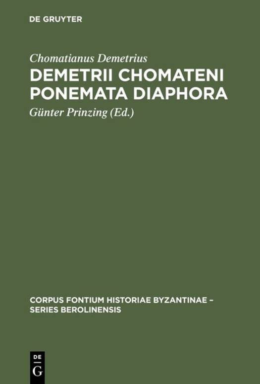Demetrios Chomatenos, bekannt als herausragender byzantinischer Kanonist, nahm als Erzbischof von Ohrid (ca. 1216-1236) im Teilreich von Epeiros gleichsam die Stellung eines Patriarchen ein. Das Corpus der Ponemata diaphora (ca. 150 persönliche und amtliche Briefe, gutachtliche Responsen sowie Urteils- und Beschlußprotokolle des Ohrider Synodalgerichts) ist sein Hauptwerk. Es gilt in doppelter Hinsicht als Quellenkomplex ersten Ranges: historisch wegen seiner hohen Informationsdichte zur politischen und kirchlichen Geschichte Südeuropas in der Umbruchszeit nach 1204; rechtshistorisch, weil Texte (und erst recht Corpora) zur Praxis kirchlicher Gerichtsbarkeit und Rechtsprechung in Byzanz generell äußerst rar sind.