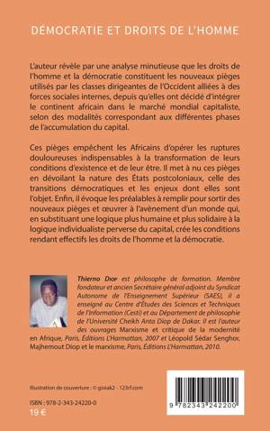 L’auteur révèle par une analyse minutieuse que les droits de l’homme et la démocratie constituent les nouveaux pièges utilisés par les classes dirigeantes de l’Occident alliées à des forces sociales internes, depuis qu’elles ont décidé d’intégrer le continent africain dans le marché mondial capitaliste. Ces pièges empêchent les Africains d’opérer les ruptures douloureuses indispensables à la transformation de leurs conditions d’existence et de leur être. Il met à nu ces pièges en dévoilant la nature des États postcoloniaux, celle des transitions démocratiques et les enjeux dont elles sont l’objet.