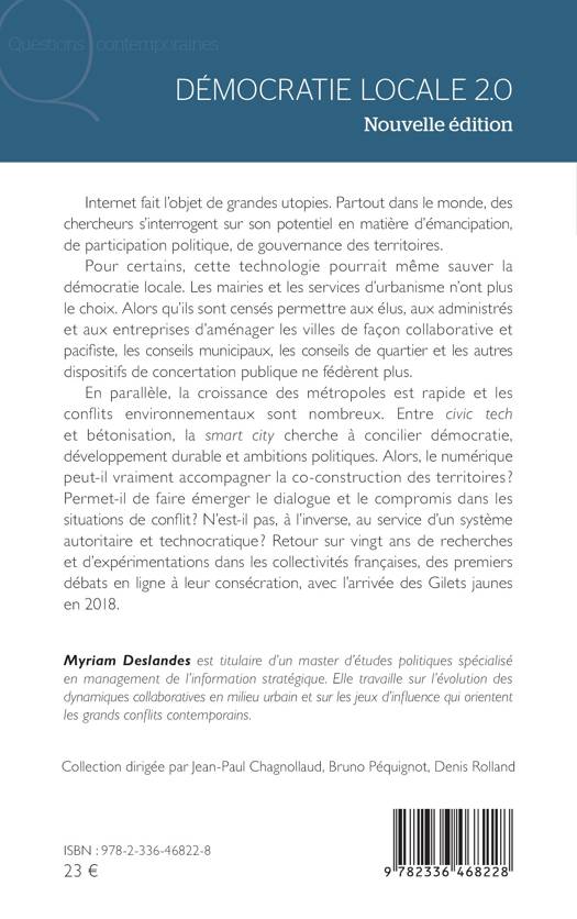 Internet fait l'objet de grandes utopies. Partout dans le monde, des chercheurs s'interrogent sur son potentiel en matière d'émancipation, de participation politique, de gouvernance des territoires. Pour certains, cette technologie pourrait même sauver la démocratie locale. Les mairies et les services d'urbanisme n'ont plus le choix. Alors qu'ils sont censés permettre aux élus, aux administrés et aux entreprises d'aménager les villes de façon collaborative et pacifiste, les conseils municipaux, les conseils de quartier et les autres dispositifs de concertation publique ne fédèrent plus. En parallèle, la croissance des métropoles est rapide et les conflits environnementaux sont nombreux. Entre civic tech et bétonisation, la smart city cherche à concilier démocratie, développement durable et ambitions politiques. Alors, le numérique peut-il vraiment accompagner la co-construction des territoires ? Permet-il de faire émerger le dialogue et le compromis dans les situations de conflit ? N'est-il pas, à l'inverse, au service d'un système autoritaire et technocratique ? Retour sur vingt ans de recherches et d'expérimentations dans les collectivités françaises, des premiers débats en ligne à leur consécration, avec l'arrivée des Gilets jaunes en 2018.