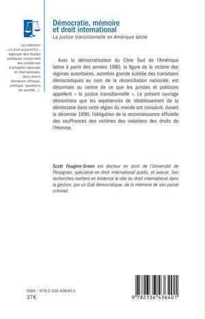Avec la démocratisation du Cône Sud de l'Amérique latine à partir des années 1980, la figure de la victime des régimes autoritaires, autrefois grande oubliée des transitions démocratiques au nom de la réconciliation nationale, est désormais au centre de ce que les juristes et politistes appellent la justice transitionnelle . Le présent ouvrage démontrera que les expériences de rétablissement de la démocratie dans cette région du monde ont consacré, durant la décennie 1990, l'obligation de la reconnaissance officielle des souffrances des victimes des violations des droits de l'Homme.