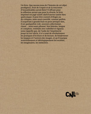 1455. Gutenberg et Fust se consacrent activement à « l'oeuvre des livres » (Werck der bucher). Sous la plume d'un tabellion mayençais, cette mention marque de façon moins anodine qu'il n'y paraît les prémices d'une révolution majeure. Attesté quelques décennies plus tôt en Corée, le procédé typographique vient en effet d'être éprouvé à Strasbourg et donne le jour à la prestigieuse Bible « à 42 lignes ». C'est l'acmé d'une période d'expérimentations qui a conduit des premières impressions xylographiques aux livres en lettres mobiles. Puis tout ne sera que perfectionnements mais aussi tentatives de contrôle de la diffusion des savoirs et des idées, et règlementations. Au fil de plus de cinq siècles, les tirages et les éditions auront été multipliés sans discontinuer, faisant et défaisant les fortunes intellectuelles ou littéraires, comme financières. Mais que savons-nous de l'histoire de cet objet prodigieux, fruit de l'esprit et de la rencontre d'innombrables savoir-faire ? S'offrant pour la réflexion autant que pour la rêverie, il est jugé tantôt chef-d'oeuvre tantôt bien quelconque, couvert d'éloges ou de critiques, il peut être contrôlé, censuré parfois ; s'acquérant à grands frais ou pour presque rien, il est quelquefois volé, souvent collectionné, classé... mais aussi pilonné. C'est cette histoire longue et complexe que trois spécialistes nous relatent au prisme des connaissances les plus récentes, et d'une riche et inédite iconographie. Ils nous rappellent que, de l'aube de l'imprimerie jusqu'au XXIe siècle, le livre n'a cessé de révolutionner les pratiques d'écriture et de lecture, de bouleverser les langues et l'univers des images, qu'il marque matériellement et idéologiquement les sociétés, les imaginaires, les mémoires. Et ils restituent avec subtilité et vigueur le rôle majeur du livre imprimé en un temps où la publication numérique pourrait substituer sa culture propre au règne sans partage du livre imprimé sur l'accès et la diffusion de la pensée.