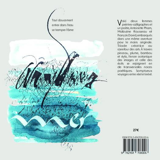 Voici deux femmes peintres-calligraphes et un poète, Antoinette Pham, Malouine Rousseau et François David, embarqués dans une même aventure pour le moins originale. Triade créatrice au carrefour des arts. À travers pinceau, plume, bambou et stylo, l’encre océanique des images et celle des écrits se rejoignent en de transversales noces poétiques. Somptueux voyages entre réel et irréel. (Extrait de la préface d’Alice Baxter.)