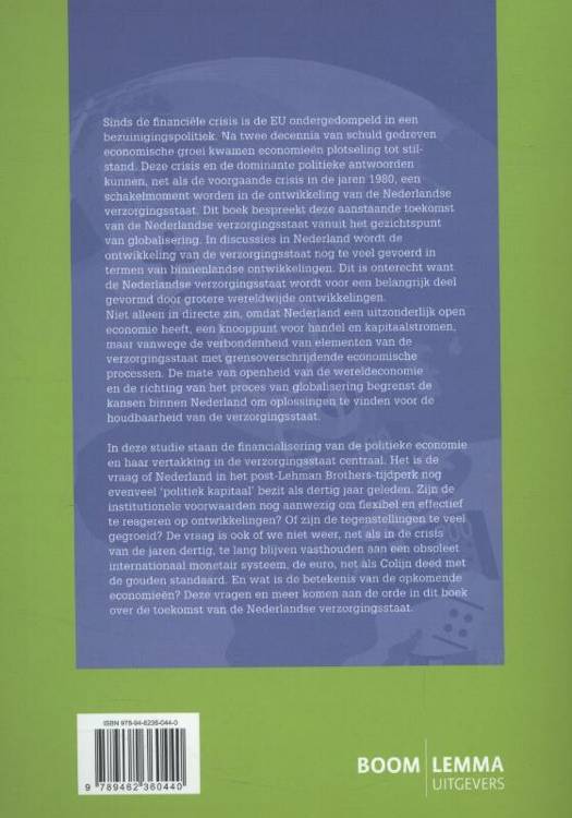 Sinds de financiële crisis is de EU ondergedompeld in een bezuinigingspolitiek. Na twee decennia van schuld gedreven economische groei kwamen economieën plotseling tot stilstand. Deze crisis en de dominante politieke antwoorden kunnen, net als de voorgaande crisis in de jaren 1980, een schakelmoment worden in de ontwikkeling van de Nederlandse verzorgingsstaat. Dit boek bespreekt deze aanstaande toekomst van de Nederlandse verzorgingsstaat vanuit het gezichtspunt van globalisering. In discussies in Nederland wordt de ontwikkeling van de verzorgingsstaat nog te veel gevoerd in termen van binnenlandse ontwikkelingen. Dit is onterecht want de Nederlandse verzorgingsstaat wordt voor een belangrijk deel gevormd door grotere wereldwijde ontwikkelingen. Niet alleen in directe zin, omdat Nederland een uitzonderlijk open economie heeft, een knooppunt voor handel en kapitaalstromen, maar vanwege de verbondenheid van elementen van de verzorgingsstaat met grensoverschrijdende economische processen. De mate van openheid van de wereldeconomie en de richting van het proces van globalisering begrenst de kansen binnen Nederland om oplossingen te vinden voor de houdbaarheid van de verzorgingsstaat.